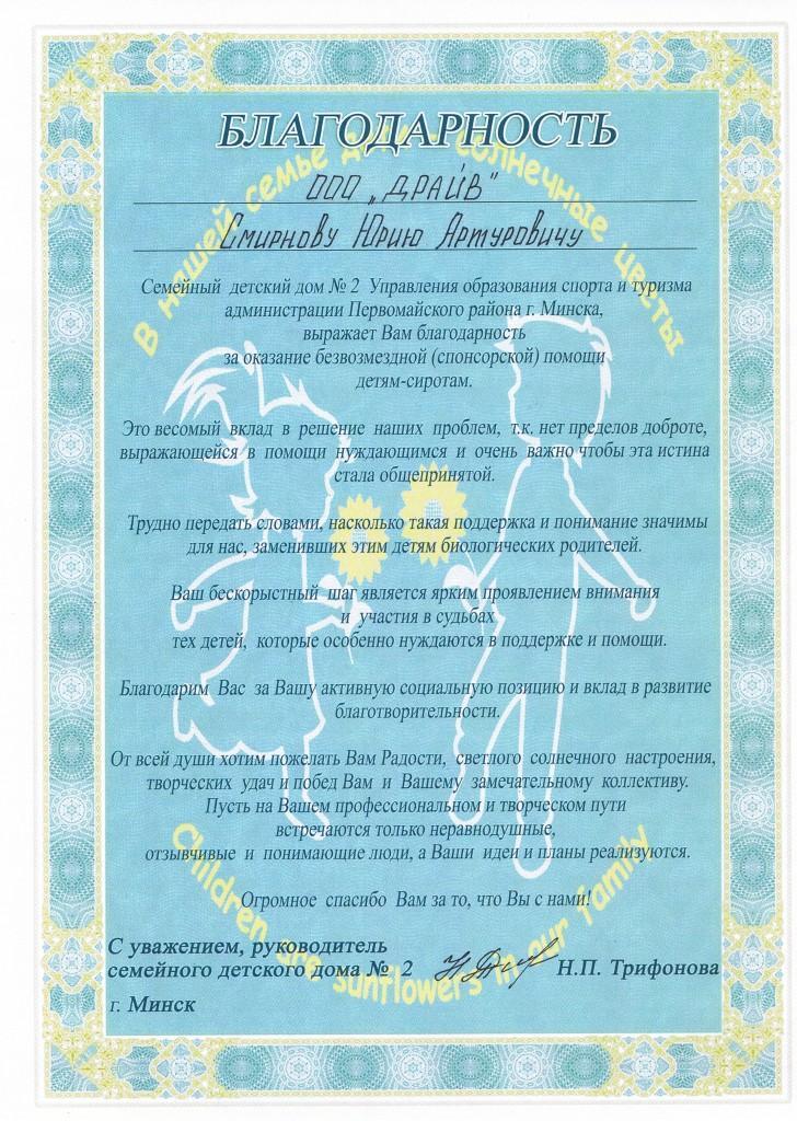 Лента новостей → Благотворительная деятельность ООО “ДРАЙВ”