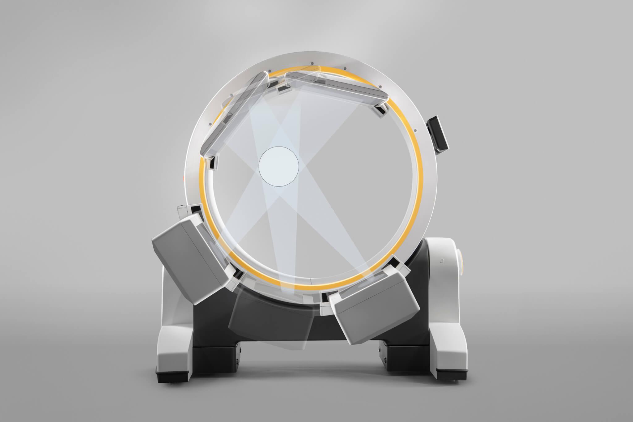 Сканер Loop-X компании способен самостоятельно передвигаться вокруг операционного стола и отъезжать, когда в нем нет необходимости. Его рентгеновский детектор и источник излучения могут независимо вращаться вокруг пациента вдоль большой кольцевой стойки, позволяя выполнять 2D- и 3D-сканирование, сужая при этом использование излучения.