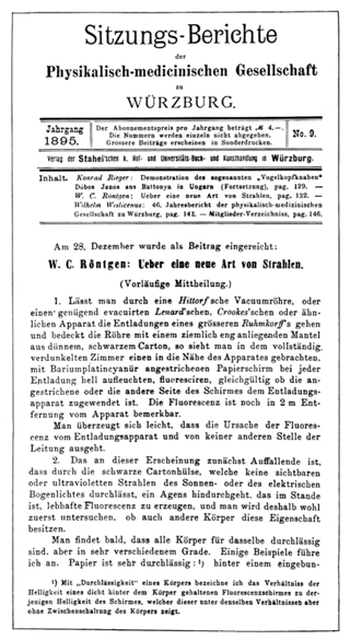 Рис. 1 Публикация Вильгельма Конрада Рентгена об открытии Х-лучей