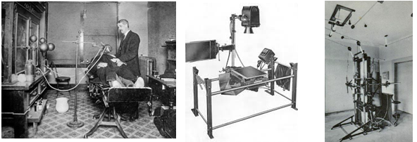 Рис. 3 Варианты исполнения рентгеновских аппаратов в 1-ой половине ХХ столетия.