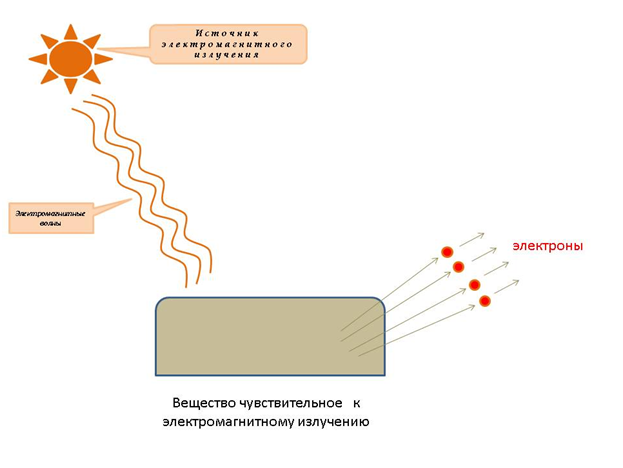 Работа приборов с зарядовой связью (ПЗС) (сокр. от англ. CCD, «Charge-Coupled Device») или PSA модуля (Photo-diode Sensors Array/ Multi-CCD Detector Method), принцип всех приборов с зарядной связью (ПЗС) основан на фотоэлектрическом эффекте — испускании электронов веществом под действием электромагнитных излучений (видимо света, инфракрасного, ультрафиолетового, рентгеновского излучений и других типов электромагнитных волн). Электроны, вылетающие из вещества при внешнем фотоэффекте, называются фотоэлектронами, а электрический ток, образуемый ими при упорядоченном движении во внешнем электрическом поле, называется фототоком.