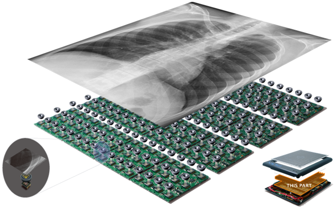 Каждый из датчиков обрабатывает относительно маленькое поле обзора на усиливающем экране, что обеспечивает высокое разрешение изображения. Чем больше количество видео датчиков, установленных в оптический блок, тем выше пространственное разрешение диагностических изображений обеспечивается приёмником. Качество изображений может быть улучшено с помощью алгоритмов масштабирования, выбором интересующей области, настройкой яркости и контраста, инверсии цвета и т.д. Полученное с датчиков и изображение непосредственно поступает на компьютер, обрабатывается и выводиться на монитор в течении нескольких секунд.