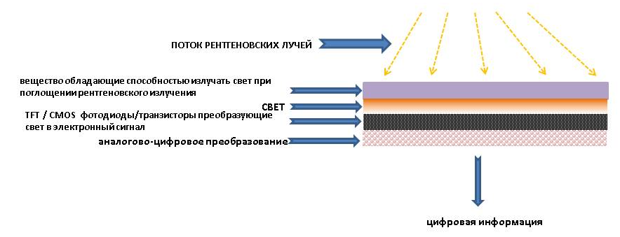 Принцип работы DR детектора (сокр. от англ. DR, «Digital Radiography»). В настоящее время производство плоскопанельных DR детекторов развивается по двум технологиям: