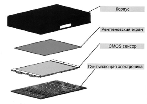 ПЗС матрица (CCD) – специализированная аналоговая интегральная микросхема, состоящая из светочувствительных фотодиодов, выполненная на основе кремния, использующая технологию приборов с зарядовой связью (ПЗС). В оптическом блоке приёмника входящие рентгеновские лучи преобразуются усиливающим экраном в видимый свет, который одновременно накапливается в видео сенсорах.