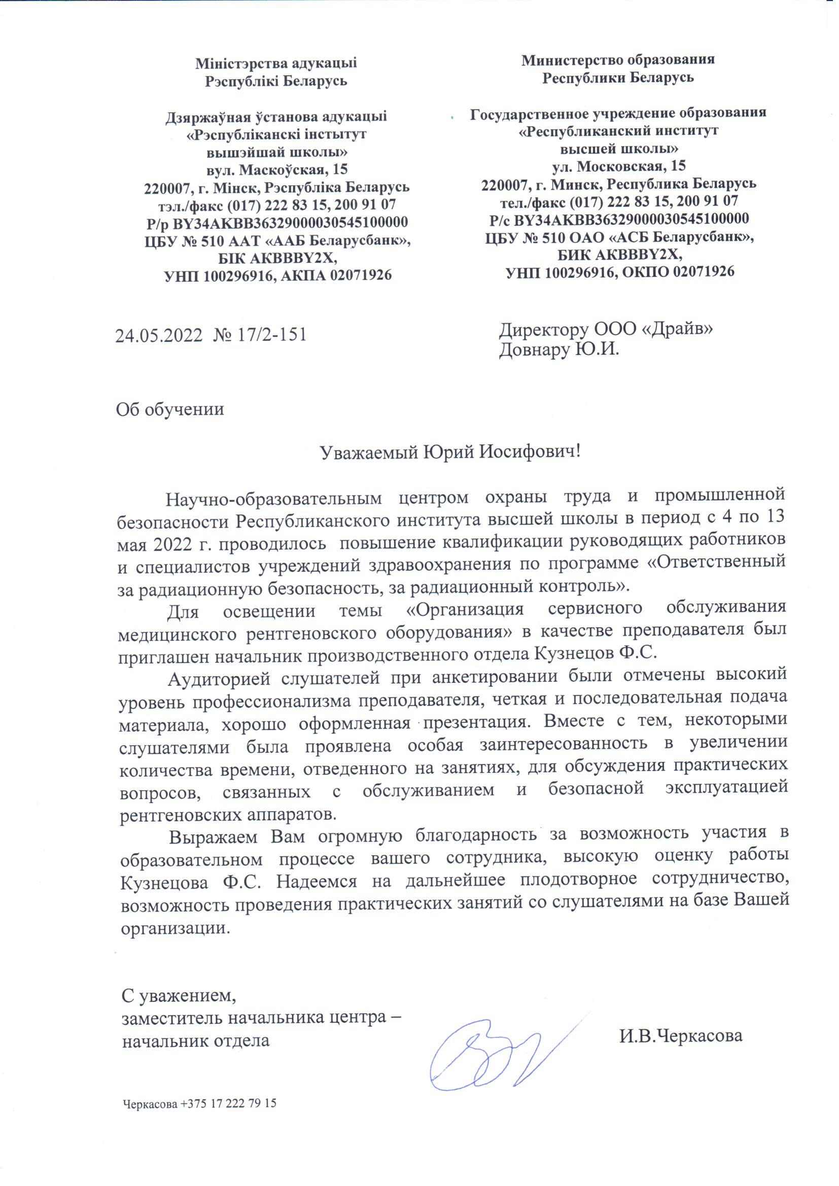 По приглашению Государственного учреждения образования “Республиканский институт высшей школы” мы рассказали слушателям о возможностях улучшения взаимодействия между рентгенолагами и сервисной организацией.