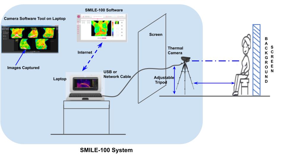 Система SMILE-100 – это устройство для термографии груди, которое помогает медицинскому персоналу рассматривать, измерять и анализировать термически значимые признаки в области груди. Он может быть использован в больнице, в учреждениях неотложной помощи, в амбулаторной клинике, в медицинских практиках, или в других организациях, где уход за пациентами обеспечивает квалифицированный медицинский персонал. Он предназначен для использования в качестве дополнительной диагностической визуализации для выявления термически значимых изменений в области молочной железы.
