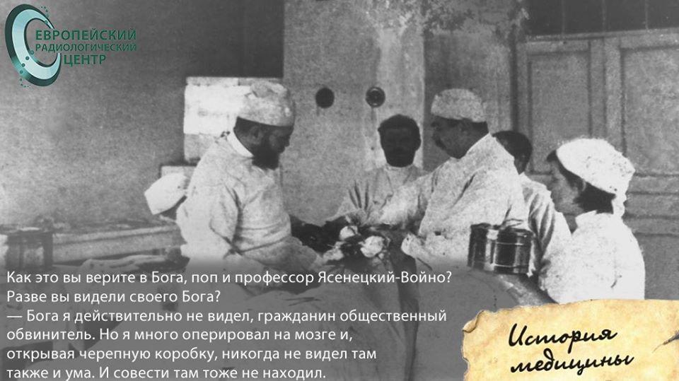 Петерс не сдавался: «Как это вы верите в Бога, поп и профессор Ясенецкий-Войно? Разве вы видели своего Бога?» «Бога я действительно не видел, гражданин общественный обвинитель. Но я много оперировал на мозге и, открывая черепную коробку, никогда не видел там также и ума. И совести там тоже не находил».