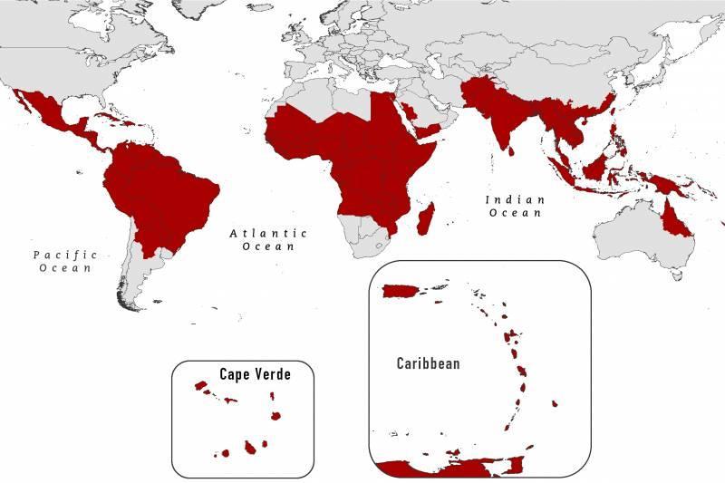 Комары путешествовали вместе с людьми на кораблях, кусали матросов и пассажиров, снимались с судов в портах… Известно, что в начале Конкисты многих видов тропических лихорадок не было, они пришли на кораблях из стран Старого Света. От лихорадки денге гибли солдаты Ост-Индской компании, воевавшие на территории Индии. Эпидемия косила как индусов, сражавшихся за свою свободу во время Сипайского восстания, так и английских солдат, приехавших его подавлять. От лихорадки денге тысячами гибли французские и испанские солдаты адмирала де Жинуйи, воевавшие с войсками вьетнамского императора в Кохинхине. Эпидемии поражали Индонезию, Малайзию, Лаос, Камбоджу, Индию, Бирму, Сиам, африканские страны. Комары пришли на Гавайи, на острова Тонга и Фиджи. Они с видимым удовольствием кусали как европейцев, так и чернокожих африканцев или жителей Азии и Латинской Америки. Лихорадка денге вместе с другими тропическими вирусными лихорадками распространилась практически на всю тропическую и субтропическую зоны планеты. Недавно эпидемия набросилась и на Японию. А уж в странах, куда особенно любят ездить отдыхать российские туристы – в Индии, на Бали, Шри-Ланке, Вьетнаме, Таиланде – эти комарики просто кишмя кишат!