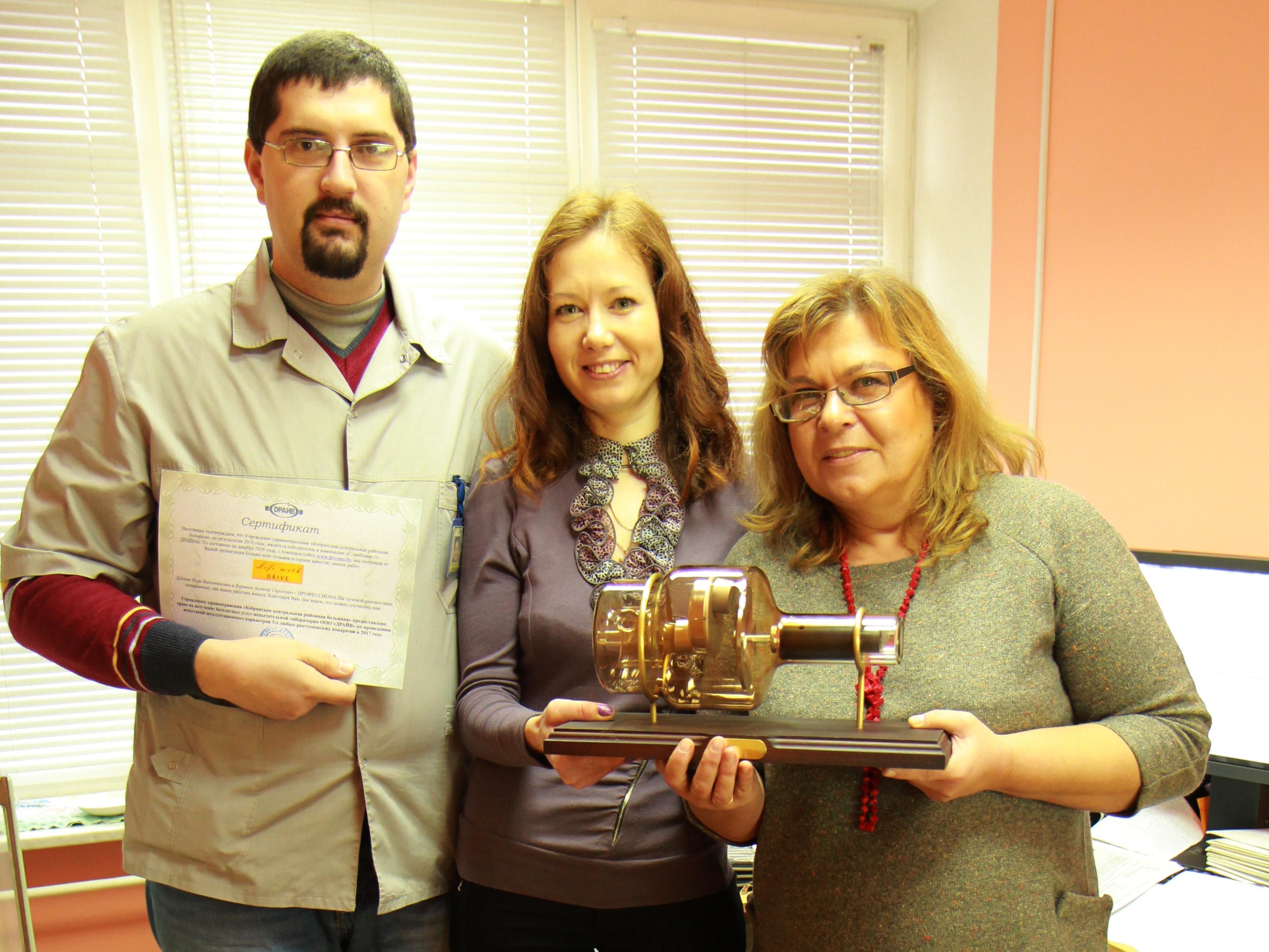 У нас новые призеры! На это раз мы выбрали ПРОФЕССИОНАЛОВ лучевой диагностики, которые работают в Учреждении здравоохранения “Кобринская ЦРБ”. Они первыми воспользовались новыми возможностями нашего сайта, благодаря чему попали в “Историю развития ООО “ДРАЙВ“: